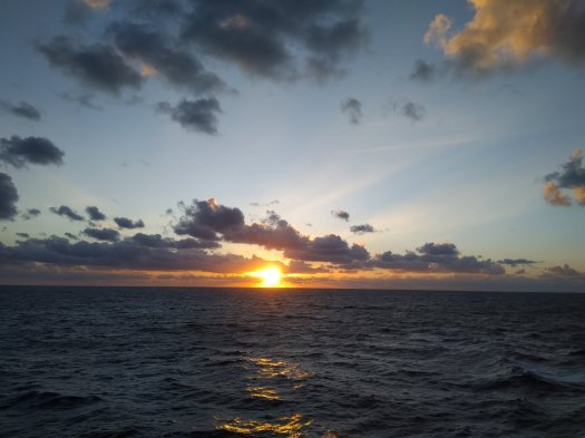 After dinner in the restaurant, not the best meal we have ever had, it was time to watch the sunset and head off to bed as we had to be outnof our cabin by 0615!!