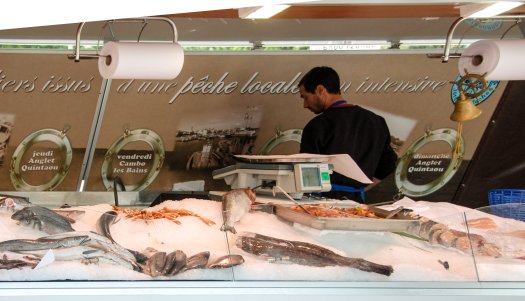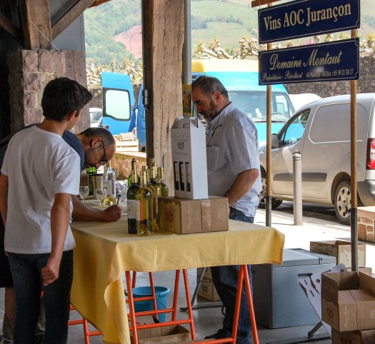 Monday is market day in St J-de-P-P! And what an array of goods were available. On one side of the river the stalls reminded me of Nutts Corner…. clothes, household items, tat as described by Paul! On the other side of the River it appears that all the farmers from the surrounding hills bring fresh produce – chillies, local cheeses, olives, wines, meats and much more