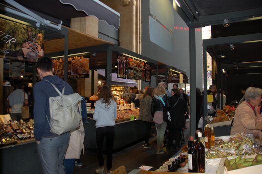 The Church of Sainte-Marie in the centre of Sarlat. Mixing contemporary elements with the 14th century architecture of the church the interior has now been converted, with much acclaim by local architect Jean Nouvel, into an elegant covered market.