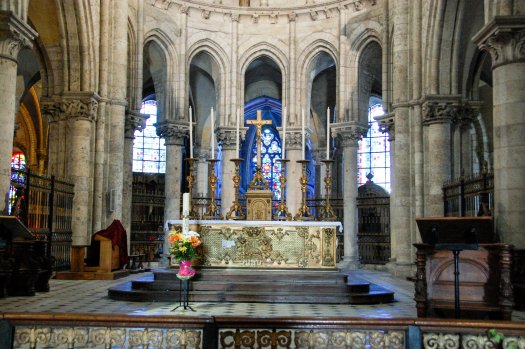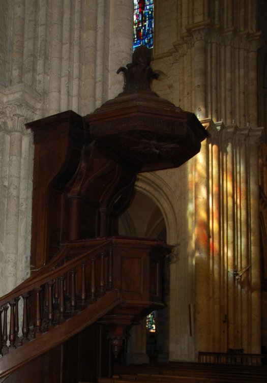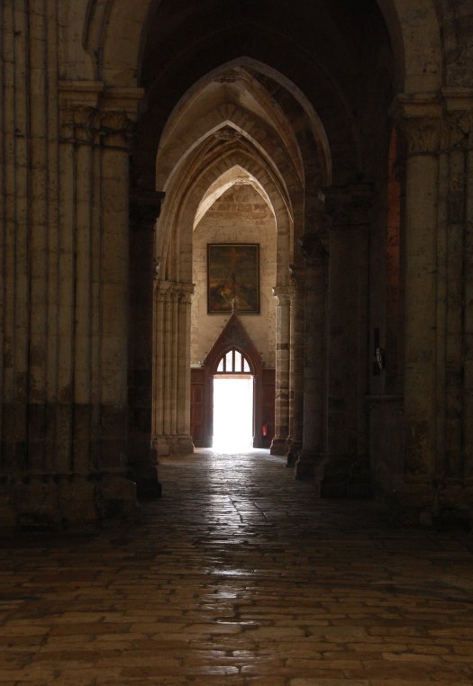 On our way back to the hotel we stopped at Eglise St’ Nicolas in the heart of the old town. The former Benedictine abbey was built between the 12th and 13th centuries, a masterpiece of Gothic style and was classed as a historic monument in 1840. The long nave is illuminated by stained glass windows which caught beautifully the evening sun.