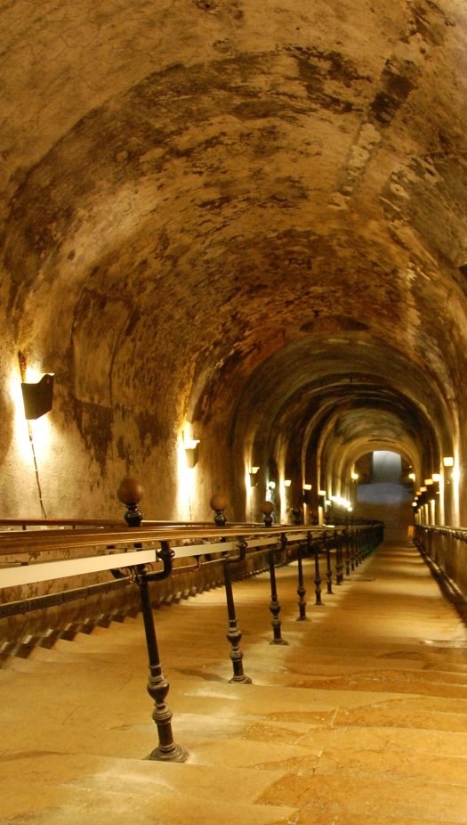 After making a fortune in the wool industry Mr Pommery decided to retire when Madame Pommery adiscovered she was pregnant at the age of 38, more than 17 years after the birth of her first child. Mr Pommery needed to go back in to business. The wool industry was in crisis, however, the Champagne trade was booming. Mr Pommery died a year after the birth of his daughter, Louise, and Madame Pommery continued with the business, building the Pommery brand. She converted Roman chalk quarries, which run under Reims, in to wine cellars. Miners dug 18km of inter-connected galleries formed of barrel vaults and rib vaults. Mde Pommery named each of the cellars after the markets she had conquered.