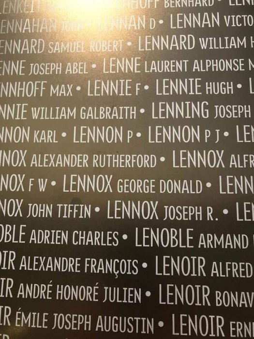 On the opposite side of the road from the cemetery is the Ring of Remembrance. Built in 2014 it contains 500 steel plaques arranged to look something like an open book and a circle. 579,606 names of soldiers who fell during the 1st World War in Nord-Pas dear Calais are engraved, in alphabetical order, without making any distinction by nationality, gender or religion one after another on the plaques