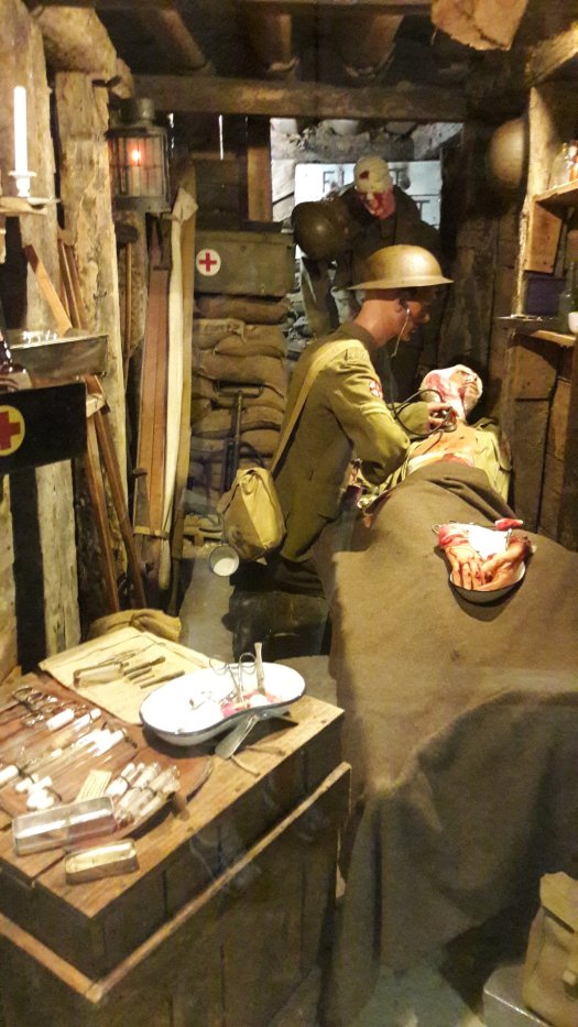 To the right hand side of the Basilica is the entrance to the Somme 1916 Museum. Ten metres underground, in tunnels dating back to the middle ages, there is an excellent display of weapons, artefacts, photographs and Dioramas of life in the war and in particular the tragic offensive of the 1st July 1916. It covers over 250 metres in length. I thought it was the most amazing collection and presentation…. certainly well worth the visit. Hopefully the pictures will speak for themselves!