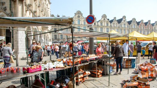 Saturday is market day in Arras and the two squares where thriving with stalls and shoppers in the hot sunshine when we arrived. The market finishes at 1.00pm and by 2pm you wouldn’t know it had been there!