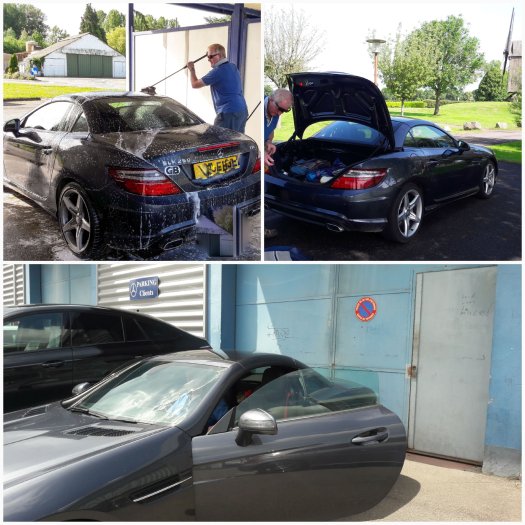We stopped at a carwash and gave Daisy the once over, driving on to let her drive off! A short time later we stopped at a lovely windmill to take a photograph and put the roof down – disaster struck!