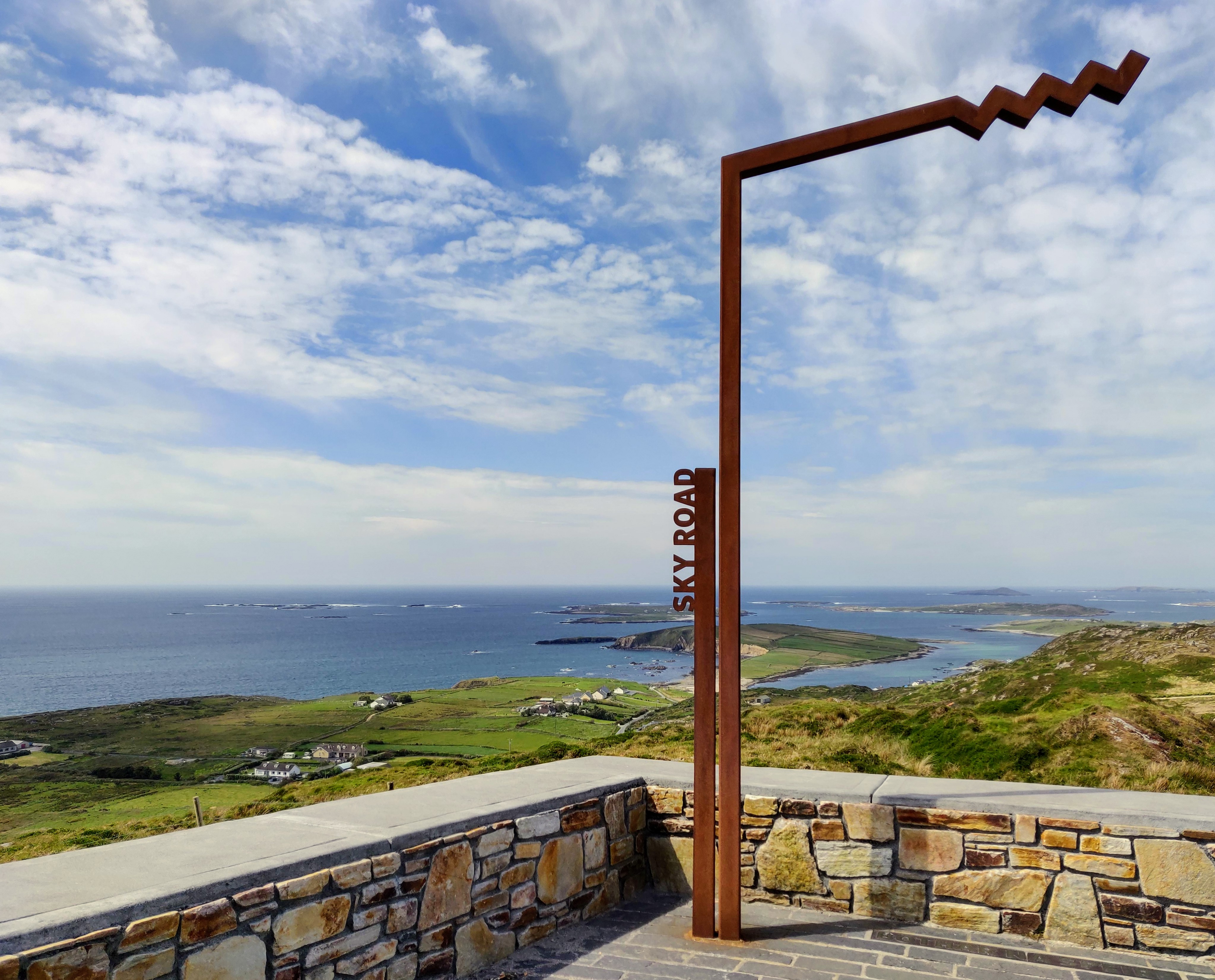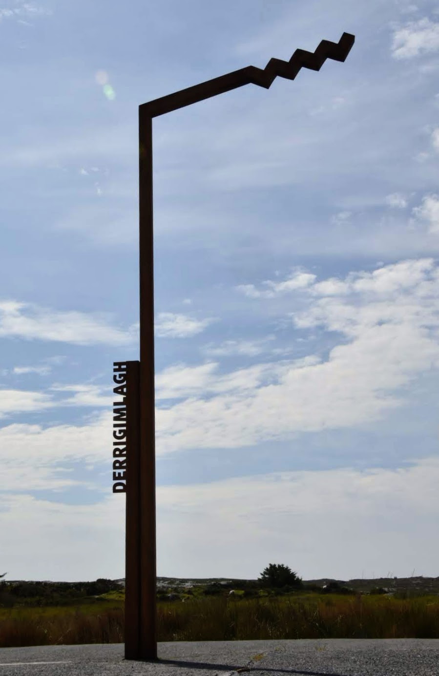 Following the points led us to some amazing beaches and views that we would most likely have bypassed were we not determined to take a photograph of the signpost. The old stone Church and cemetery at Spiddal with its cross conjured up stories of a lost past. Connemara Airport, which services the Aran Islands is nothing like Dublin or either Belfast Airport! There is no way we would have seen it but for the sign! The harbour at Ballynahown Quay was beautiful in the May sunshine and the ruins we came upon on the way to Rossaveel got us discussing the civil war and the abandoned homesteads about the country – a whole new adventure could await there! The Shadows of the Boats by Edward Delaney at Coral Strand was an interesting art installation.