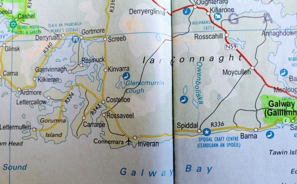 We picked up the WAW at Silver Strand, west of Galway and headed west ticking off Spiddal Pier, Connemara Airport, Ballynahown Quay, Rossaveel, Coral Strand and Carrickalegaun Bridge on our way to the hotel. Somehow we managed to miss Pearse’s Cottage! The weather was great, we were able to get the roof down and enjoy the amazing scenery of Connemara.