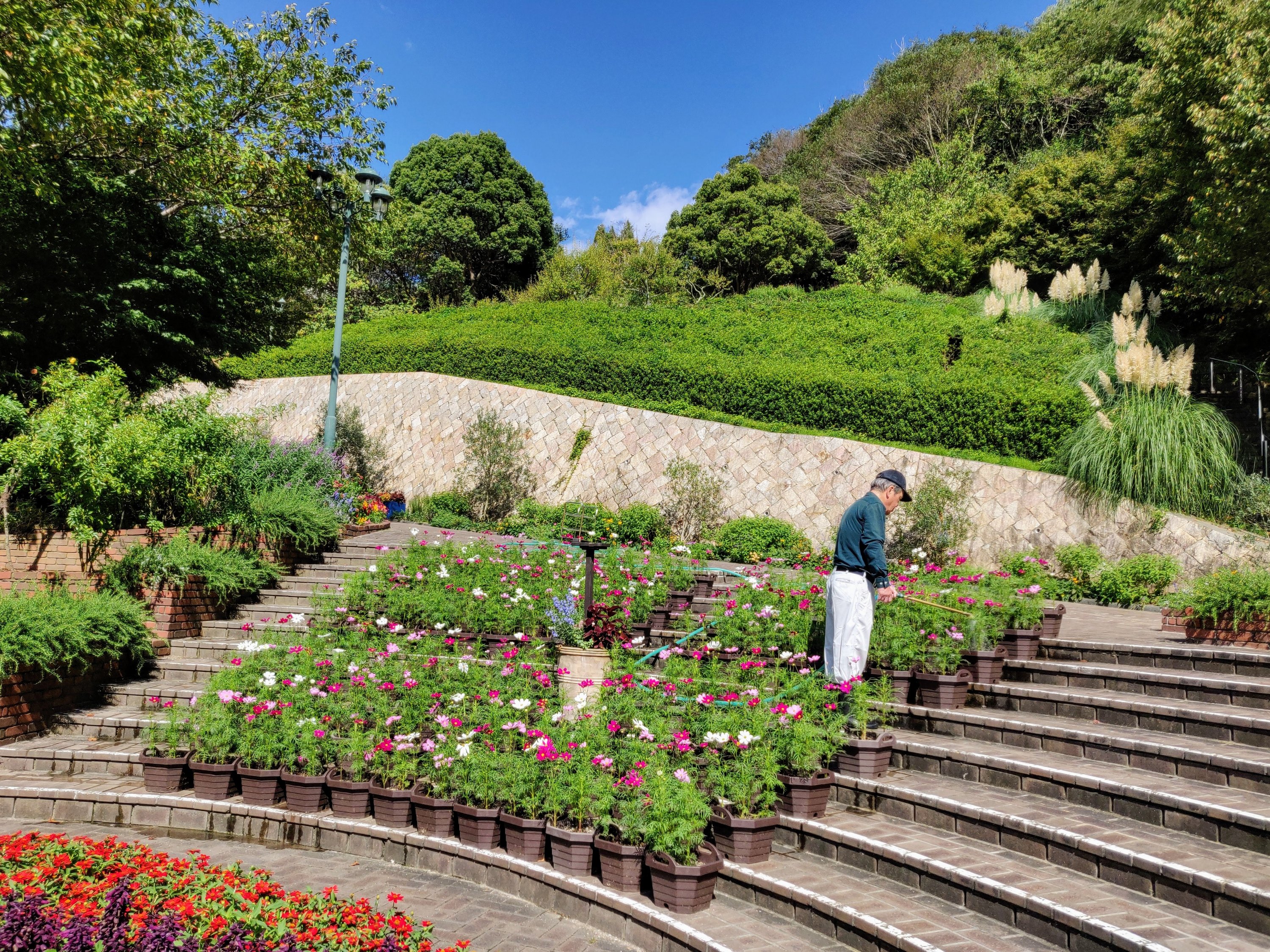 Accessed by cable car Kobe Nunobiki Herb Gardens are Japan’s largest herb gardens with around 75,000 herbs and flowers of about 200 kinds blooming throughout the year. There are 12 extensive garden areas where visitors are welcomed by seasonal herbs and flowers arranged according to different themes. Autumn and Halloween prevailing during our visit. Totally amazing place. We took the cable car up and walked down. The staff were surprised at this!! Took us about 1.5hrs to walk back down…. definitely recommend this route!