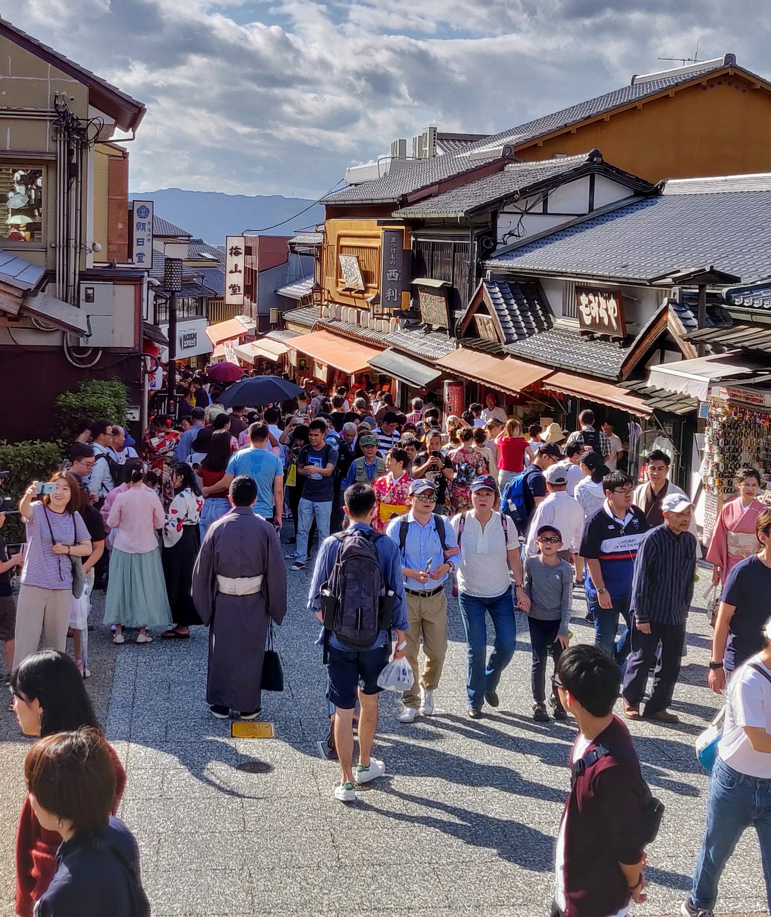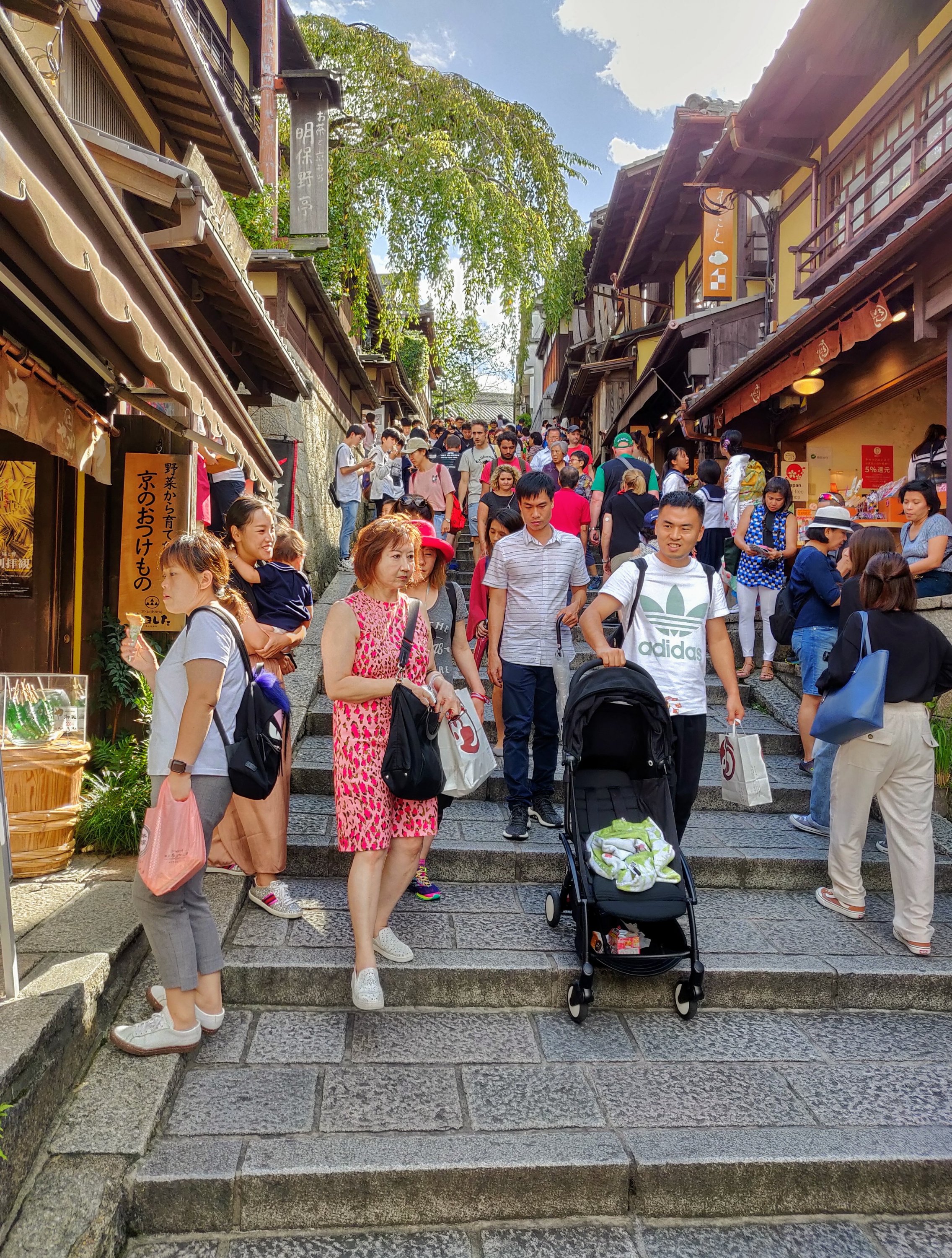 There are many temples, shrines, gardens, castles and world heritage sites in Kyoto, Google top things to do, we choose the Ninenzaja and Sannenzaka Slopes to Kiyomizudera Temple – probably the most famous and certainly the most visited site. The slopes were constructed in 808 and many of the buildings have been beautifully restored and house tea rooms and a variety of shops.