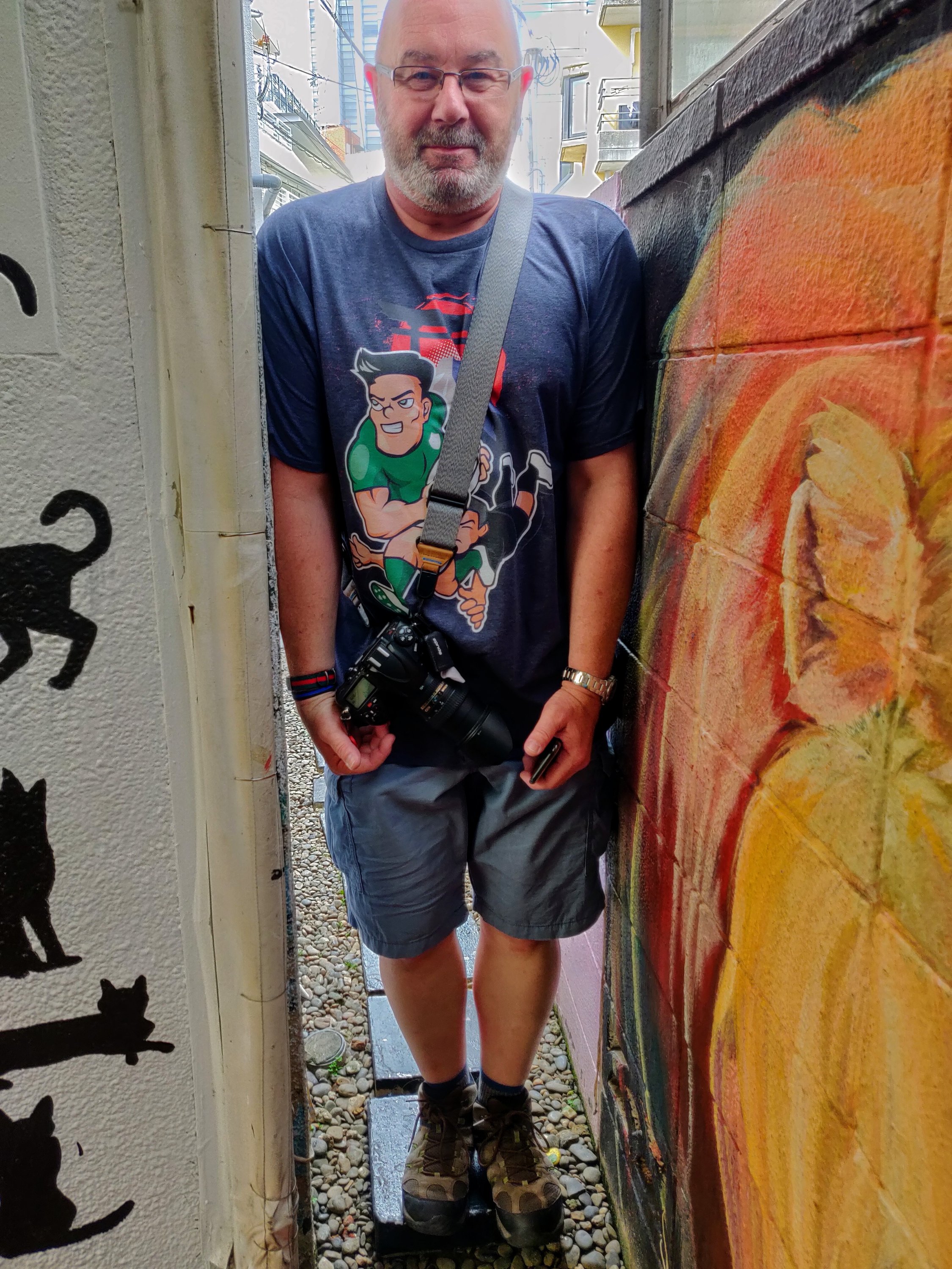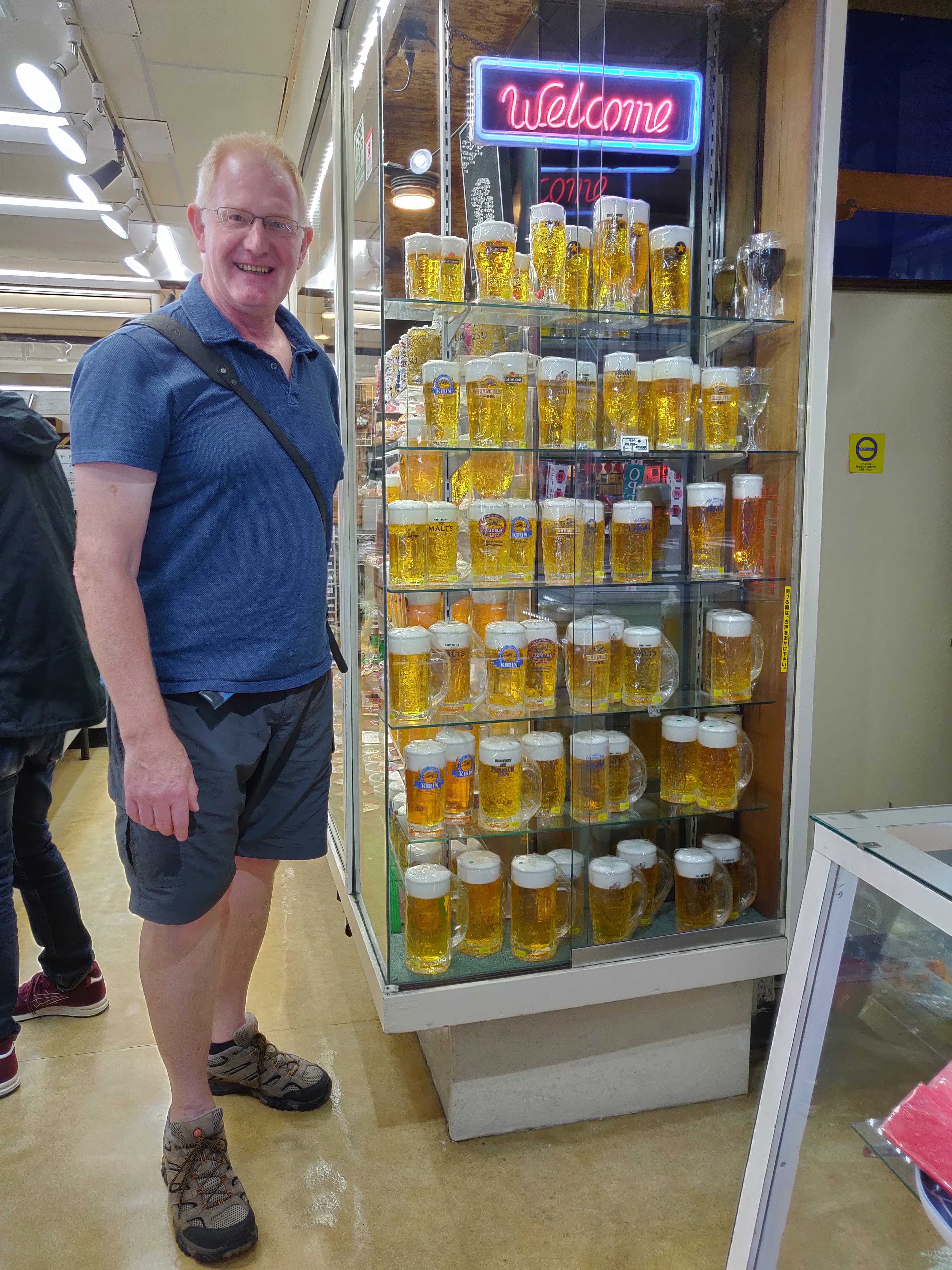 On our way back from the yatai we passed an English pub that was showing the Australia Georgia rugby match- it was packed and impossible to get in so we went to the 7/11 next door and hid our carryout behind their advertising board!! Also pictured is our new friend Richard from Guernsey…. We have met so many wonderful people on this journey.