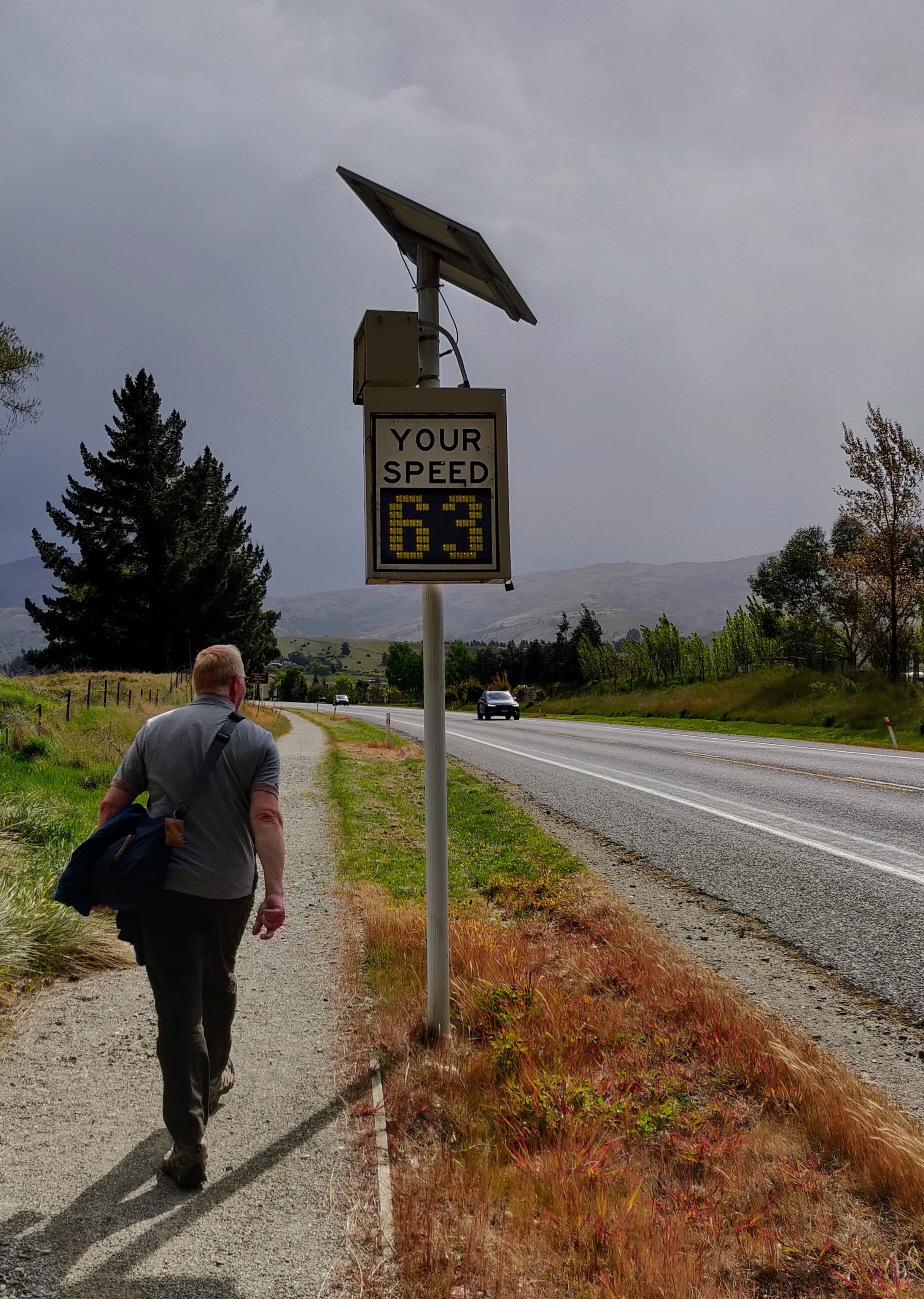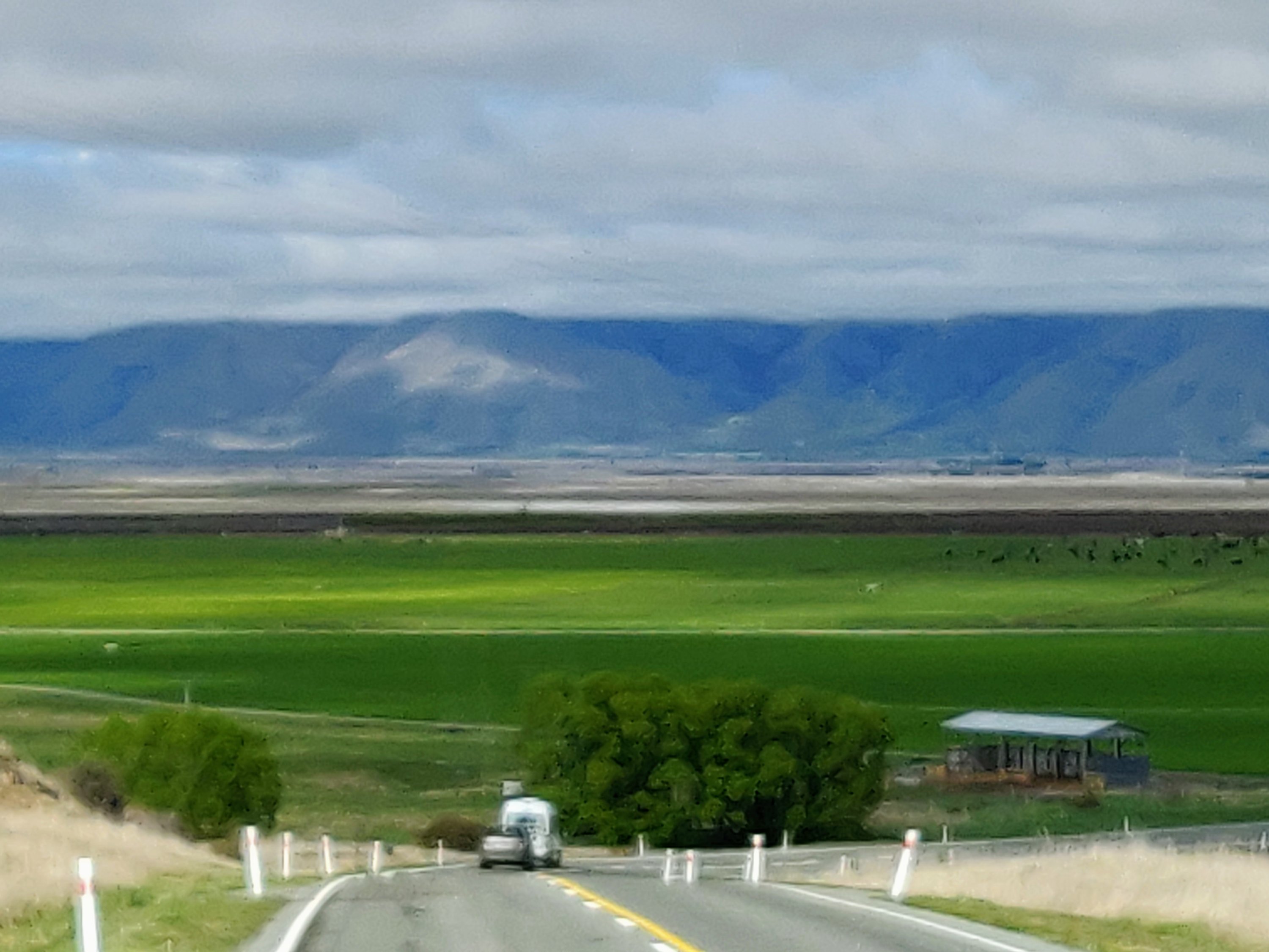 We turned off the State Highway 1 on to the SH79 towards Geraldine. I felt like a snail with my home on my back! I’m sure I’ll get used to my home being behind me, rattling along in the wake of the cab!
