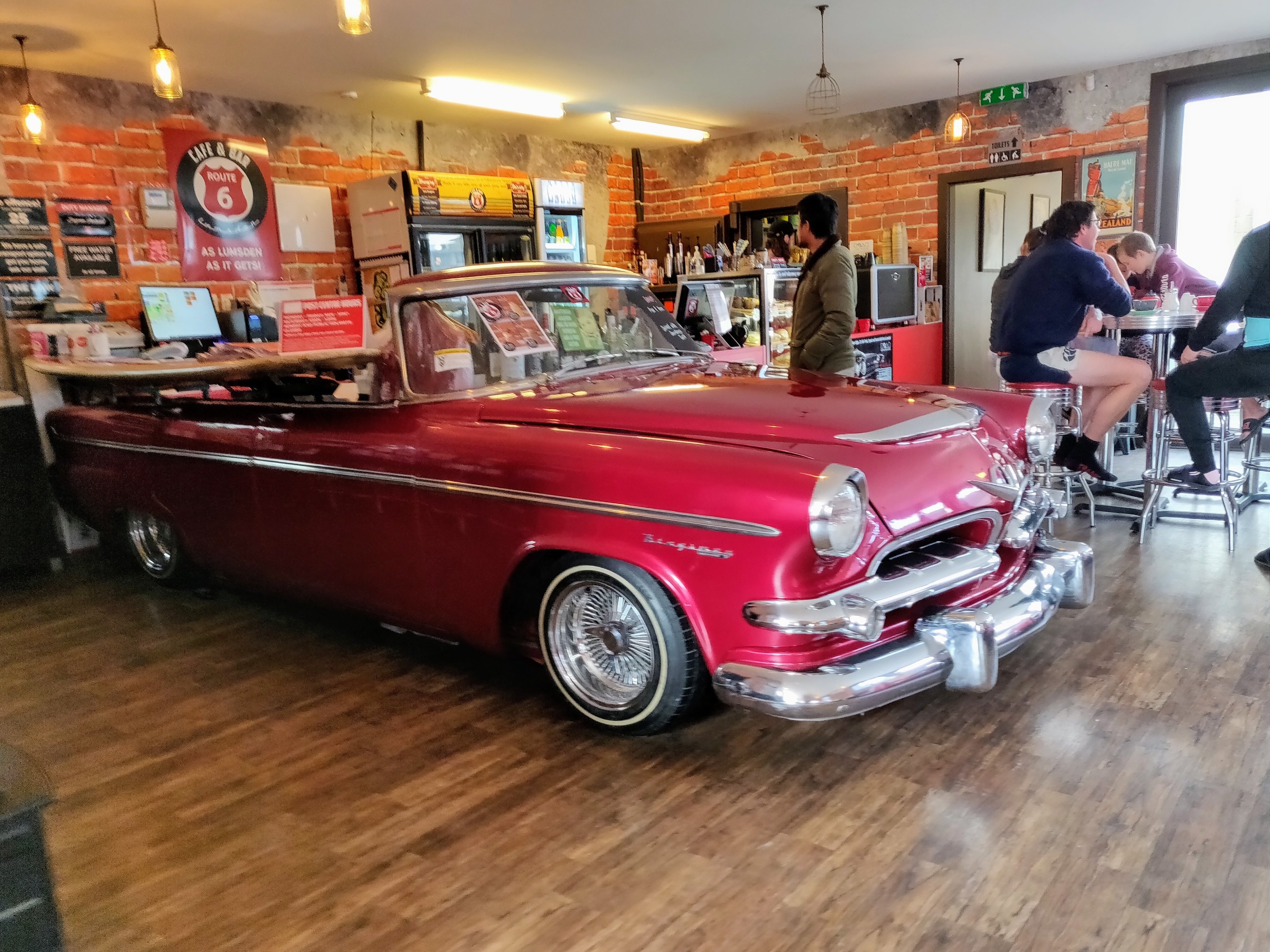 Brunch stop was at Lumsden, the halfway point between Queenstown and Invercargill road and where it is crossed by the east-west road from Gore to Te Anau. If ever you are this way we highly recommend the Route 6 cafe/bar, a modern 1950’s themed Americana Cafe with a Kiwiana touch!