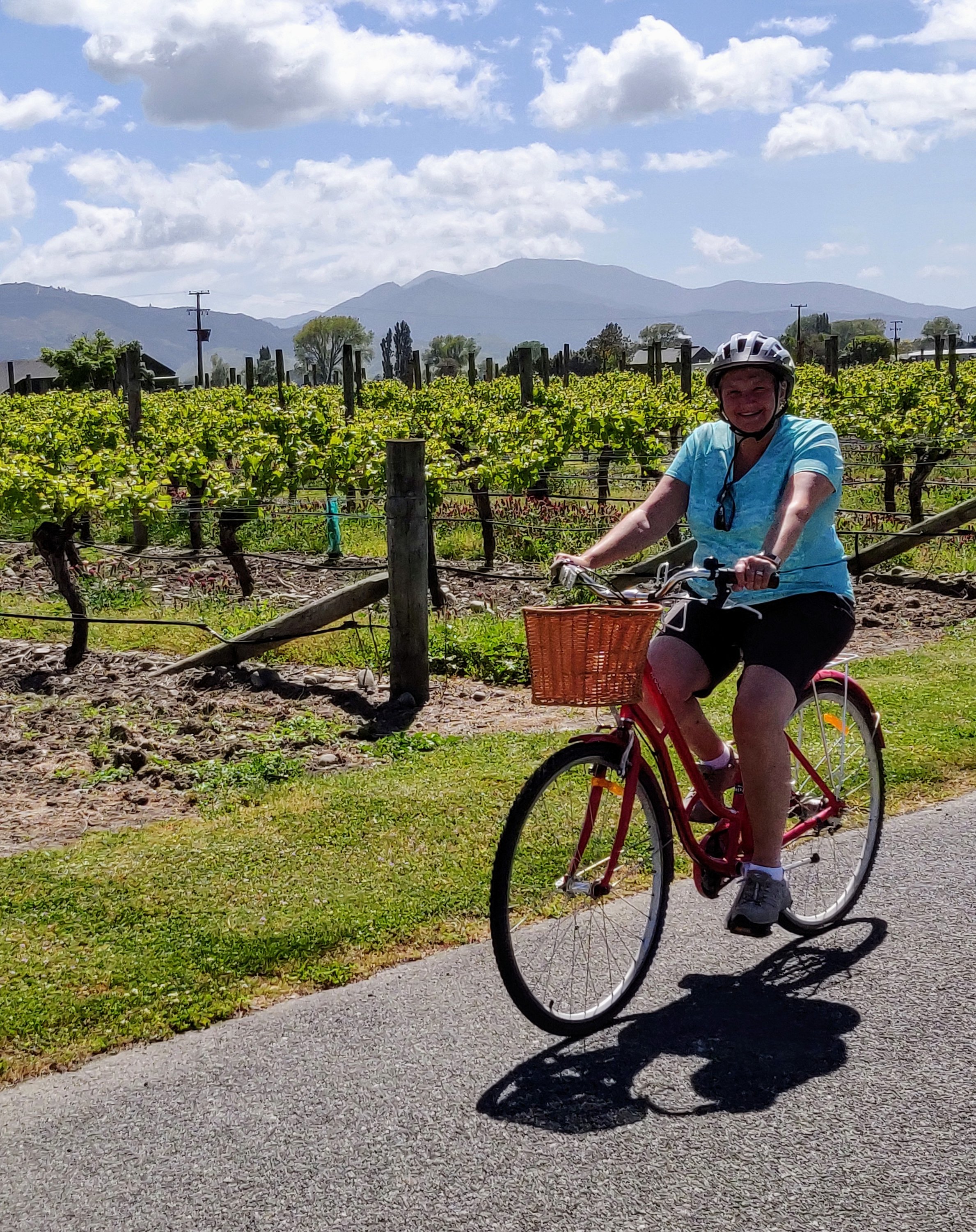 Next day we hired bikes from Peter (that was fun in itself) and did a tour of the local wineries. The weather was stunning, the trusty steeds rideable…. can’t describe how it felt peddling along like Miss Daisy with a warm breeze on my face, vineyards on either side of the tracks and the smell of spring flowers and mint in the air!
