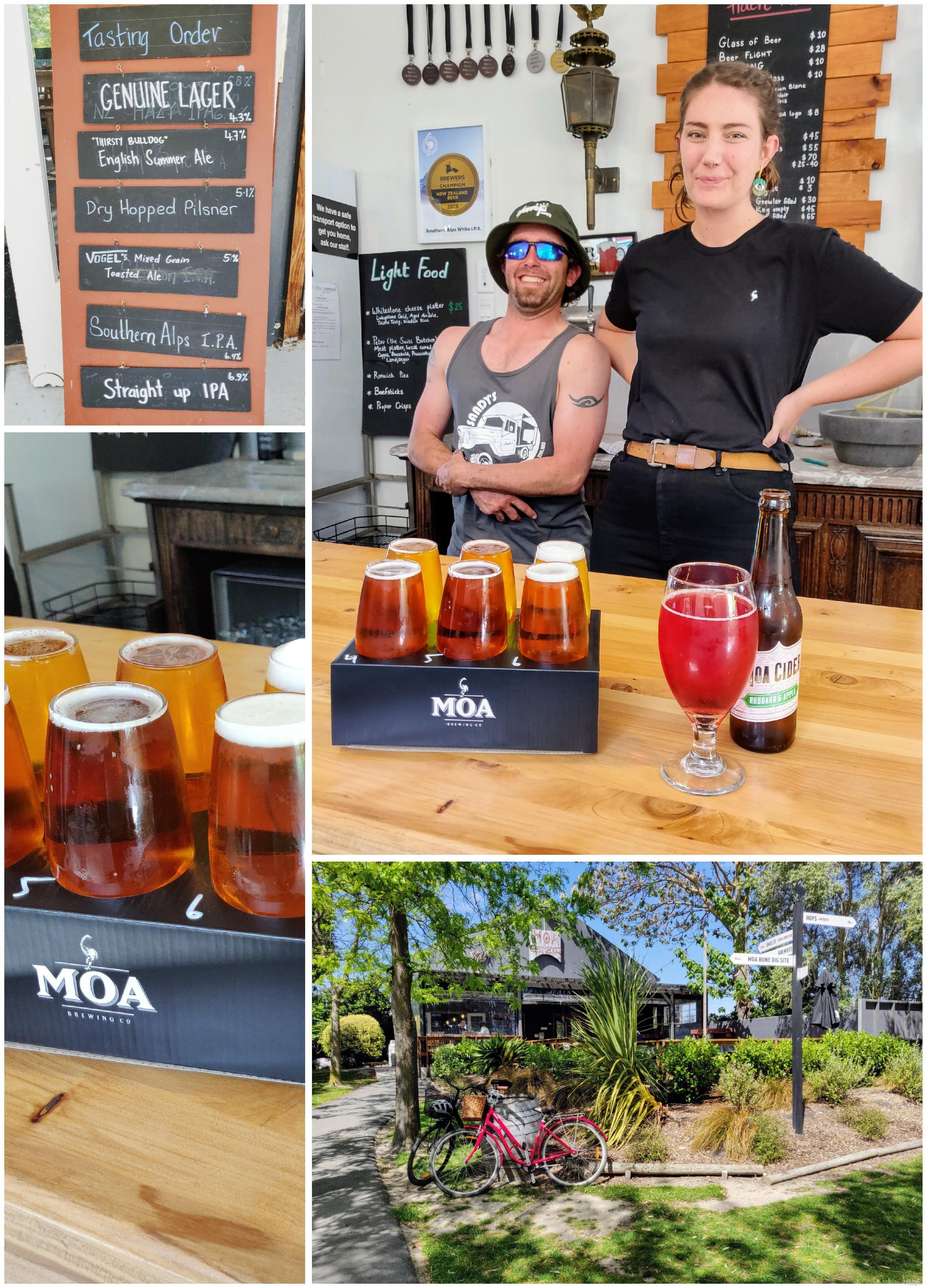 On to Moa, a micro brewery of craft ales, I know, not wine, but a must stop at, according to Peter and a great spot! Joanna, the duty manager was excellent and Brit, the owner of the food stall wasn’t being left out of the photographs! A flight of six beers was maybe a tad too much at 11am but Paul managed, describing them as a broad range from light and fruity largers to heavy, hoppy ales – I’ll take his word for it, I found the rhubarb cidar refreshing!
