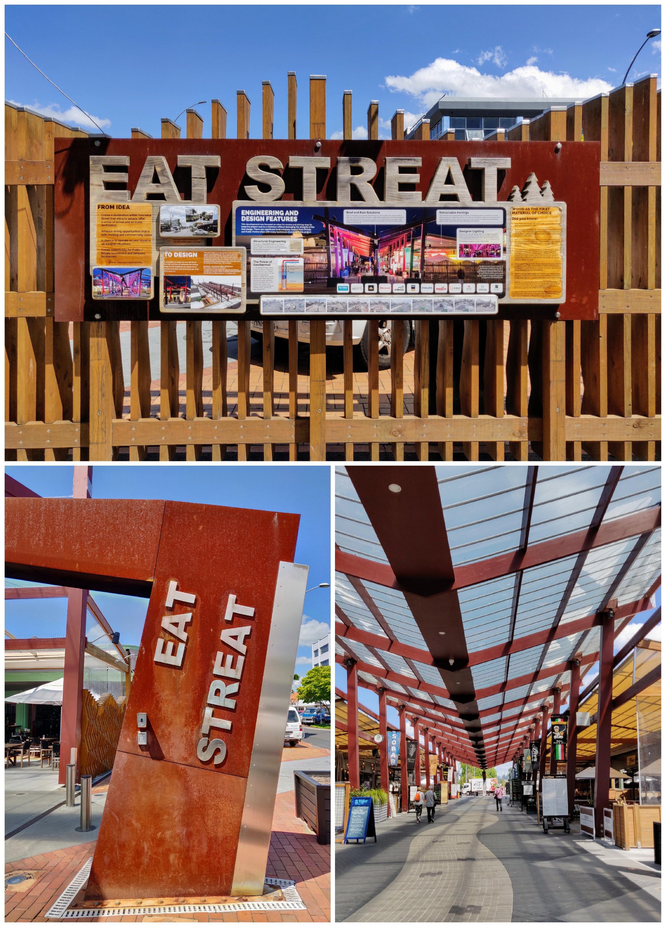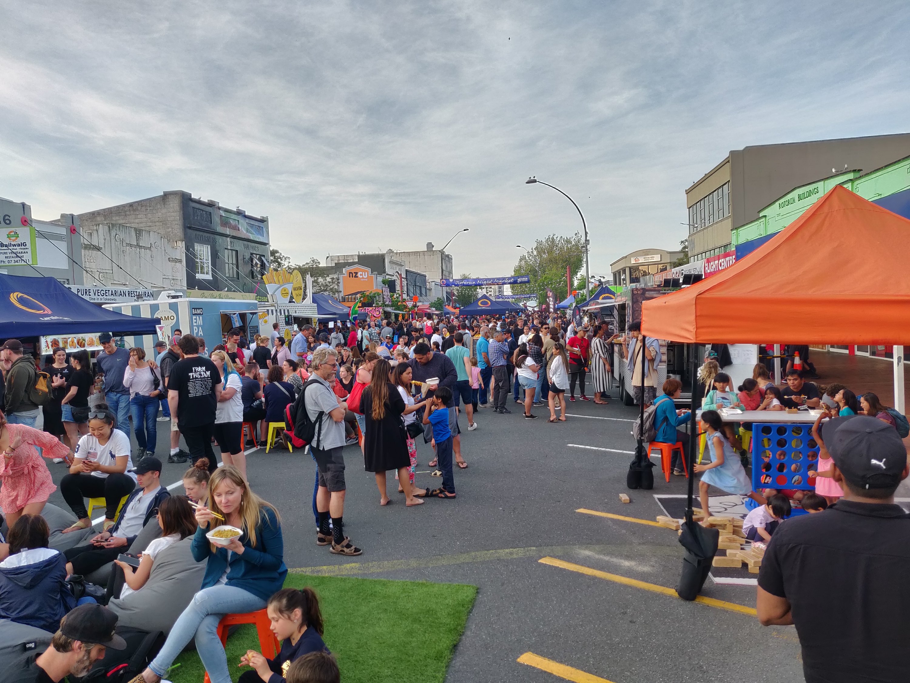 Destination Rotorua! Another one of those ‘must see’ destinations in New Zealand. It was 33′ on the dash board! Hot! Thursday evening they have an evening street market with every conceivable food type – I got the impression the whole town turned out for dinner!