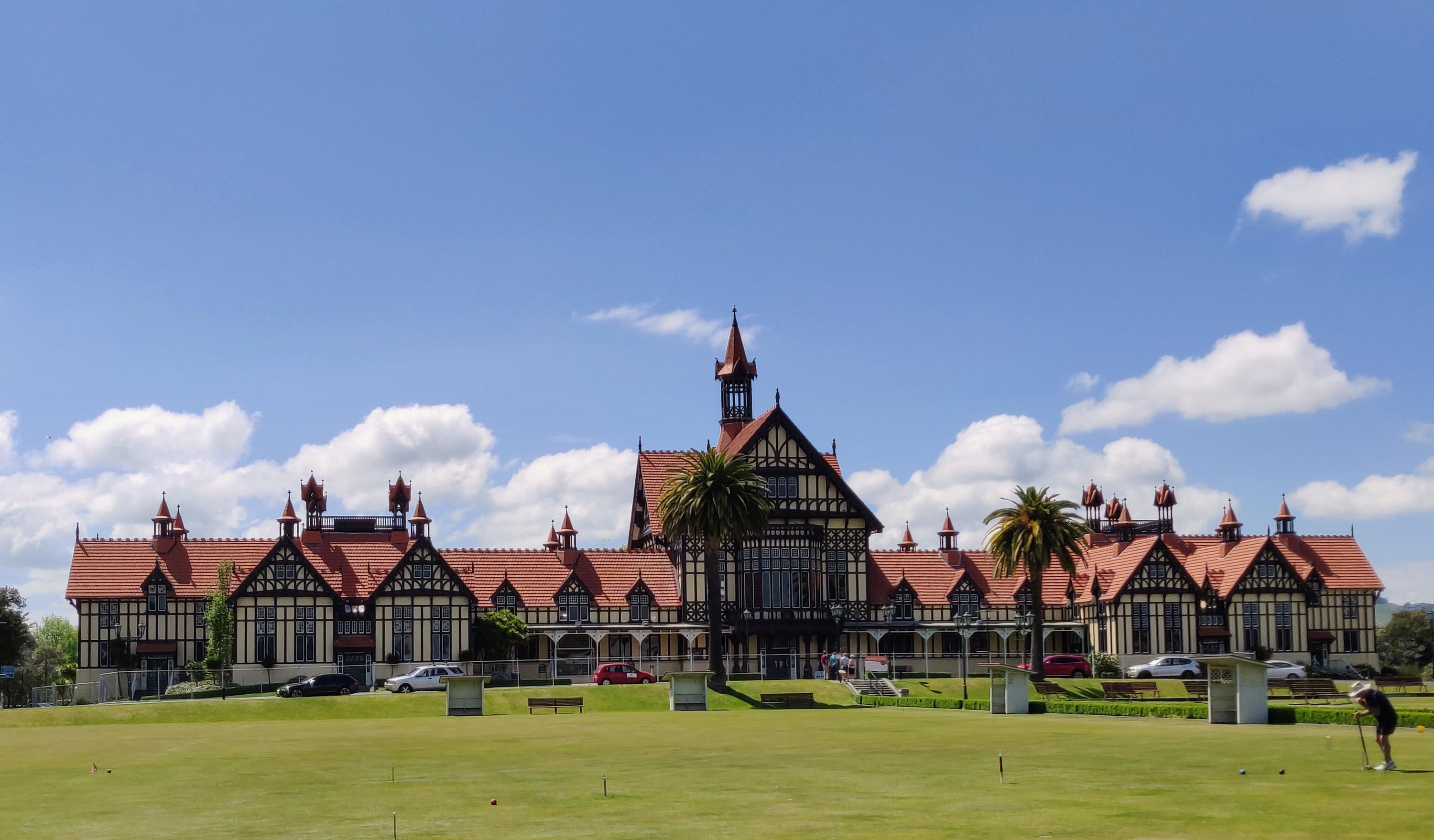 Next to the waterfront is Government Gardens. This site is of historical importance to local Maori people. In the late 1800s, they gifted 50 acres of scrub land to the crown “for the benefit of the people of the world”. The scrub was cleared and formal gardens planted. In 1908 the New Zealand government opened a large and elaborate bath house, built in the Elizabethan Tudor style of architecture.
