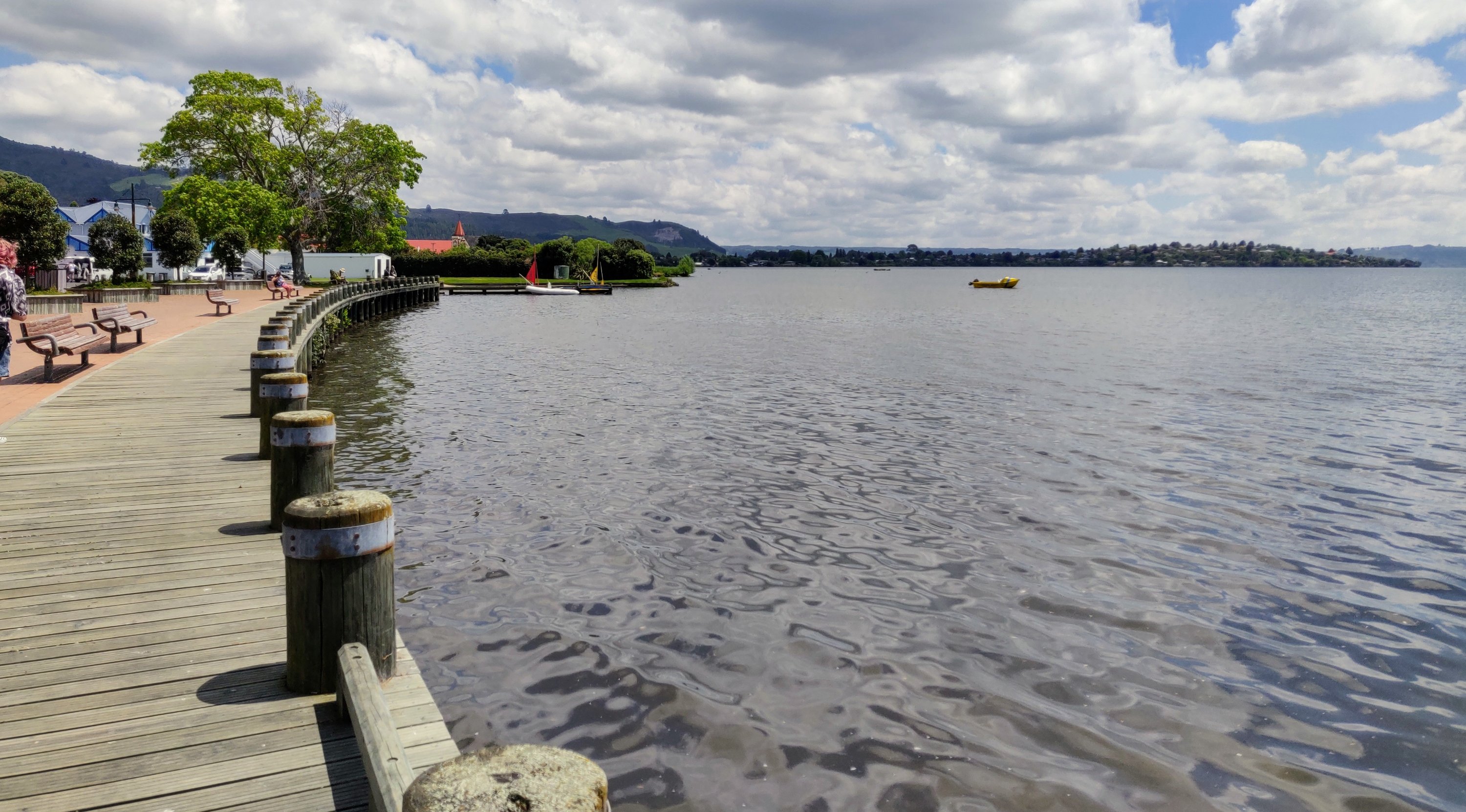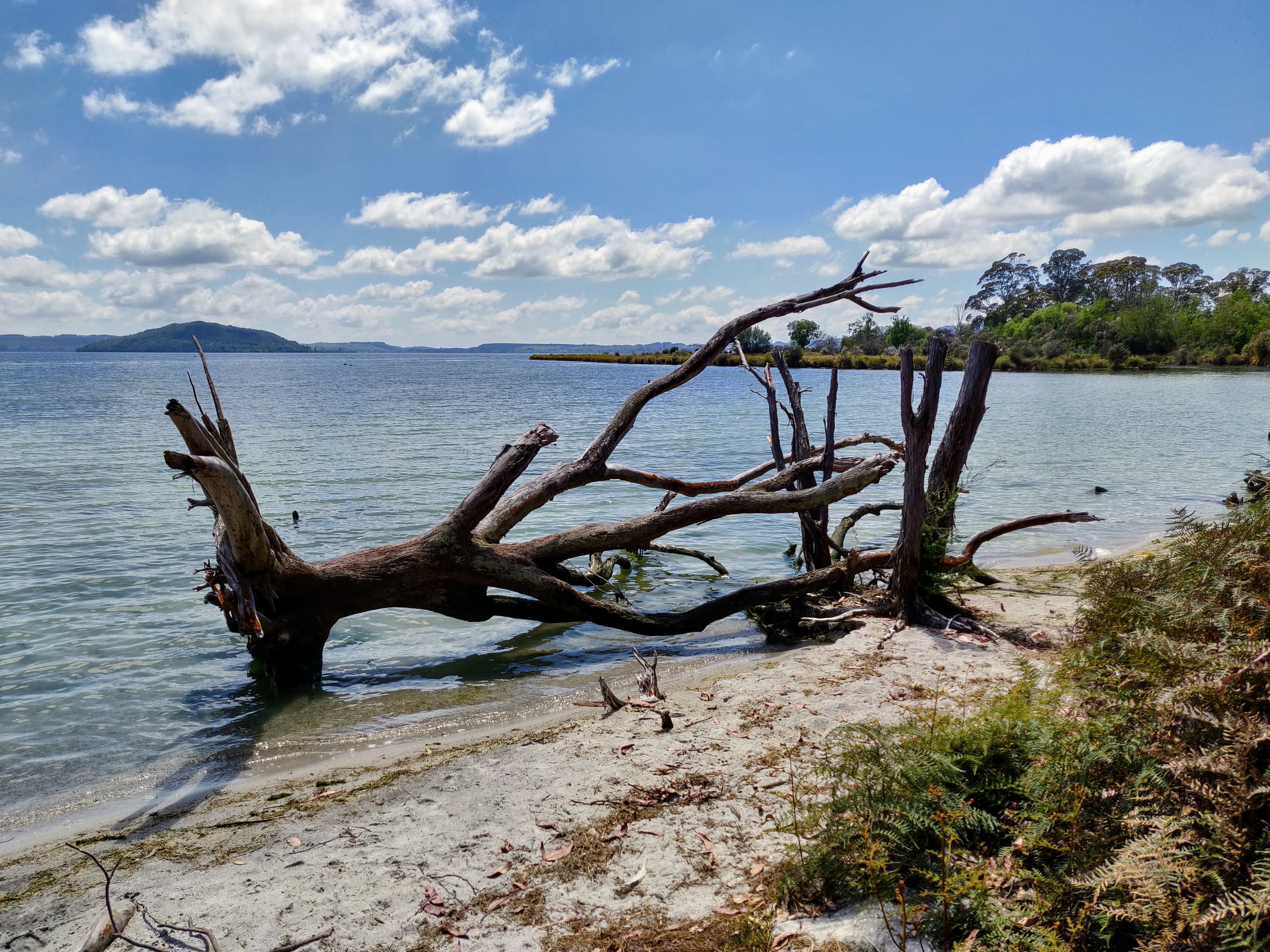 Rotorua Lake is the second largest lake in the North Island. Its’ surface covers 79.8 sqkm but has a mean depth of only 10 metres. The lake was formed from the crater of a large volcano. A nice place to walk, it is also a popular water sports area. Be aware of the flies though!!