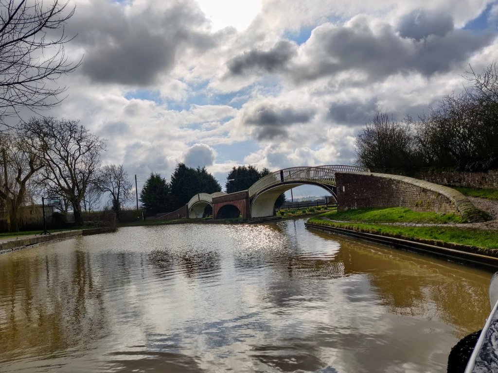 The unique triangular junction between the Oxford and Grand Union canals has two bridges carrying the towpath over the canal. Here there are a beautiful pair of Horseley Iron Works cast-iron bridges with low graceful arches. A third similar bridge is situated at the entrance to Braunston Marina.