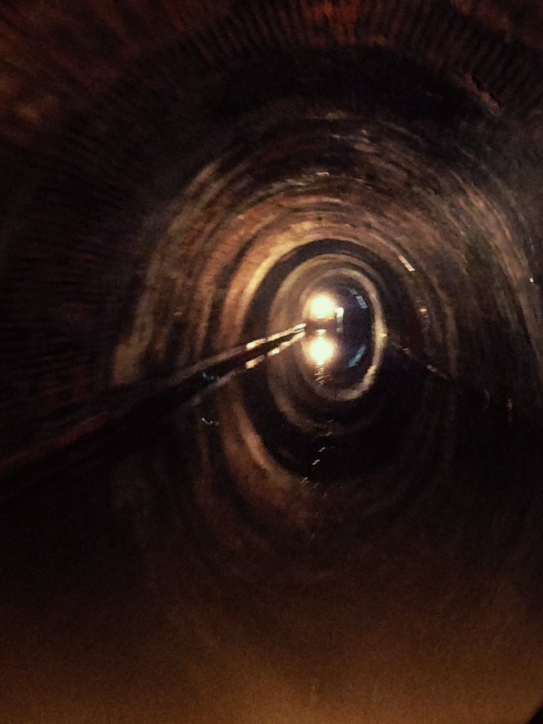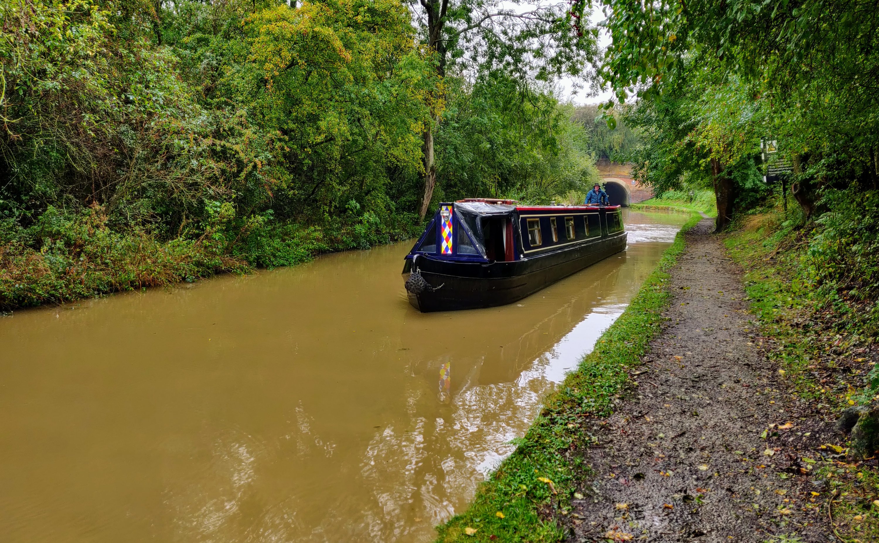 Braunston Tunnel is the seventh longest on the network at 2024yards (1.15 miles) and certainly not the straightest. Given the amount of rain over the past couple of days it was no surprise to us that we were greeted by cascading waters from the roof just after we had entered it. The tunnel is reputed to have a ghost and sometimes I wondered if it was ahead of us as there was another boat light for ages that never seemed to reach us! Not this time though, NB Stephen had just stopped until we passed! Construction was carried out by candlelight and the circular brick vents were also used to remove spoil by means of a hand winch.