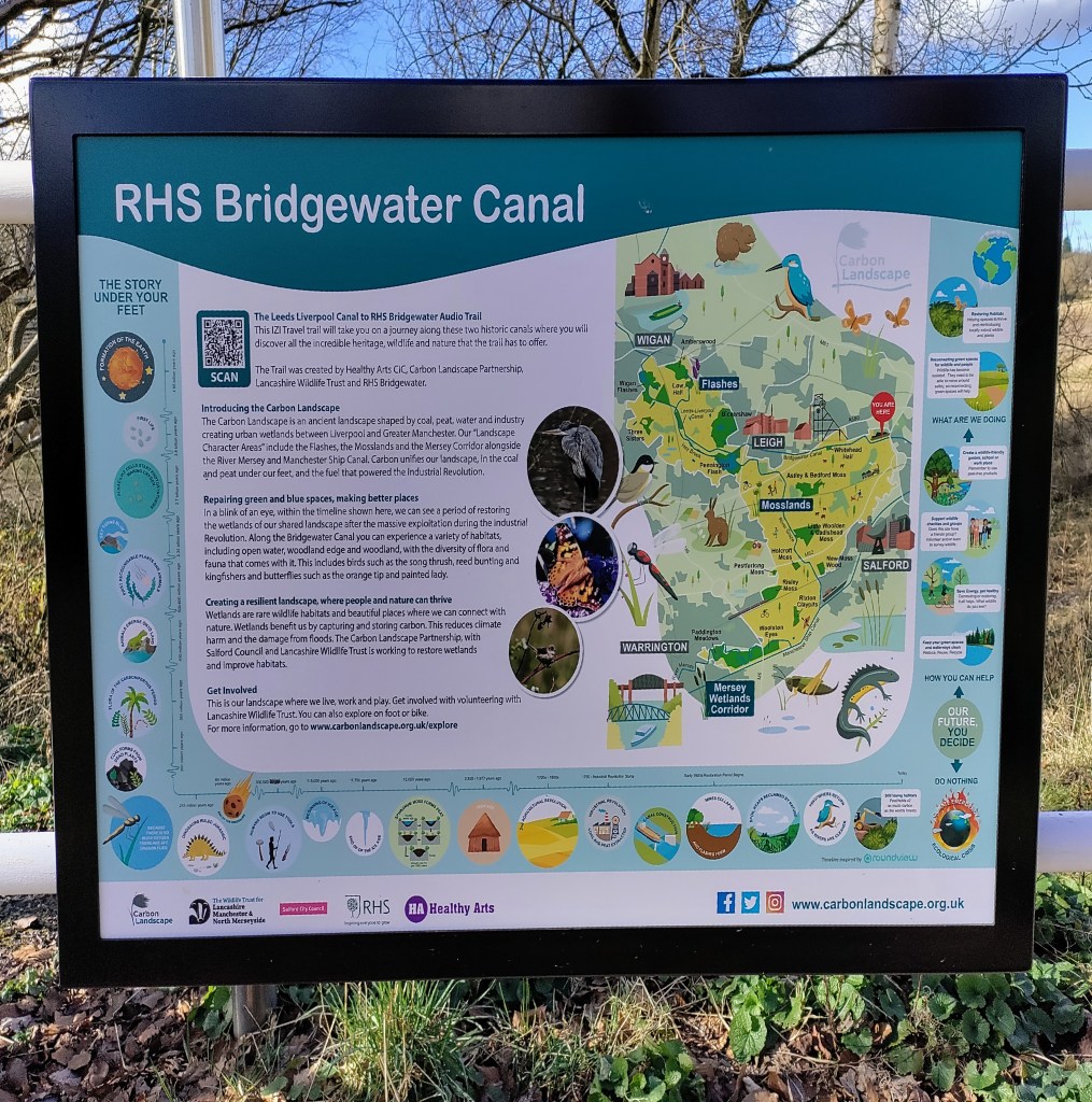This details the Leeds Liverpool Canal to RHS Bridgewater Audio Trail. The trail will take you on a journey along these two historic canals where you will discover all the incredible heritage, wildlife and nature that the trail has to offer as the Lancashire Wildlife Trust aims to deliver a carbon landscape. The paths are great for cycling or walking.