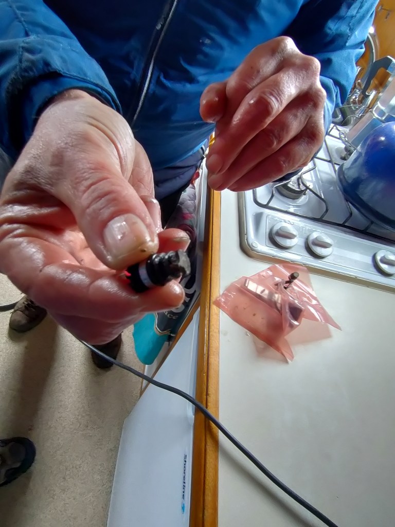 We couldn’t cruise on Wednesday, as we were waiting for an engineer to come to fix the heating on the boat.  Steve duly arrived after 3pm and diligently set to work to find the problem – a corroded overtemperature sensor!