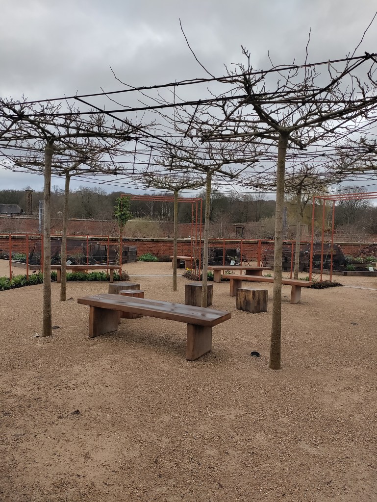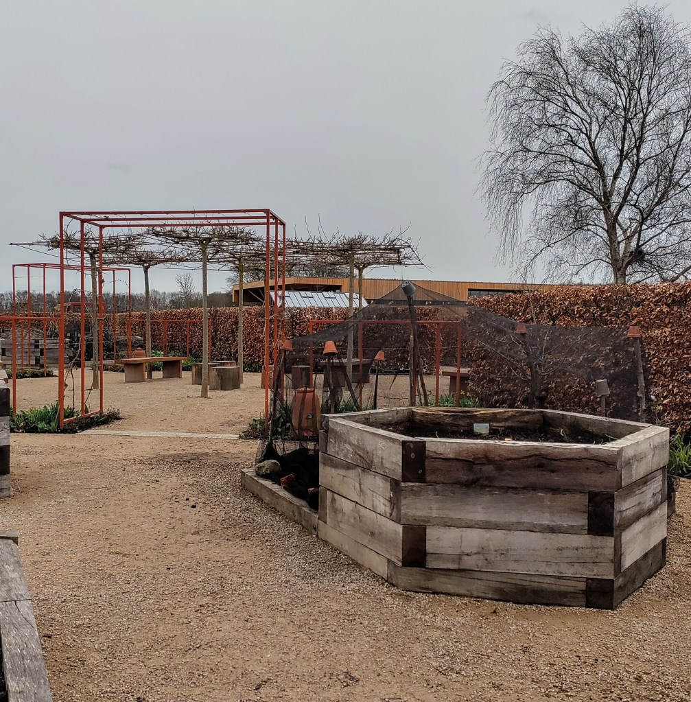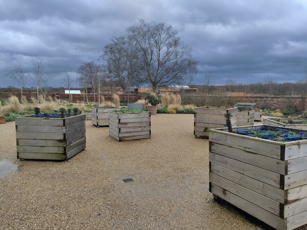 Using ordnance survey maps, the kitchen garden is laid out to reflect the underground waterways that carried coal from the coal face to the canal and the planting beds reflect the historic field network in the surrounding countryside during the 19th century.