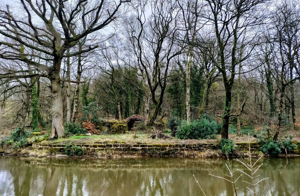 The grotto on this island in the lake and was once accessed by an iron bridge.